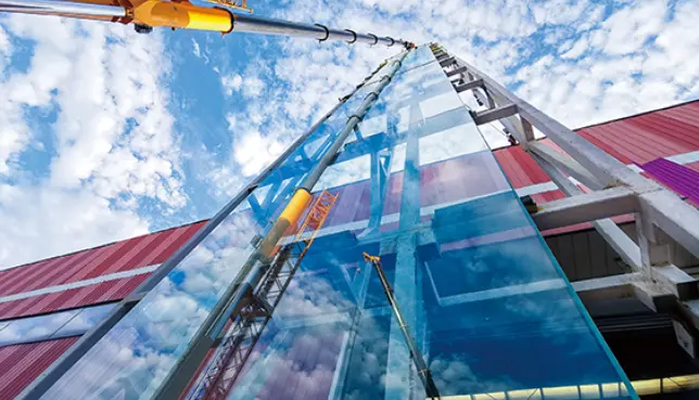 北玻研发中心大楼成功安装18.3米“超级玻璃”幕墙。